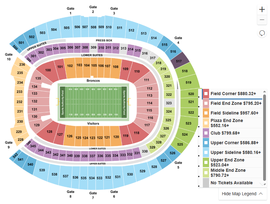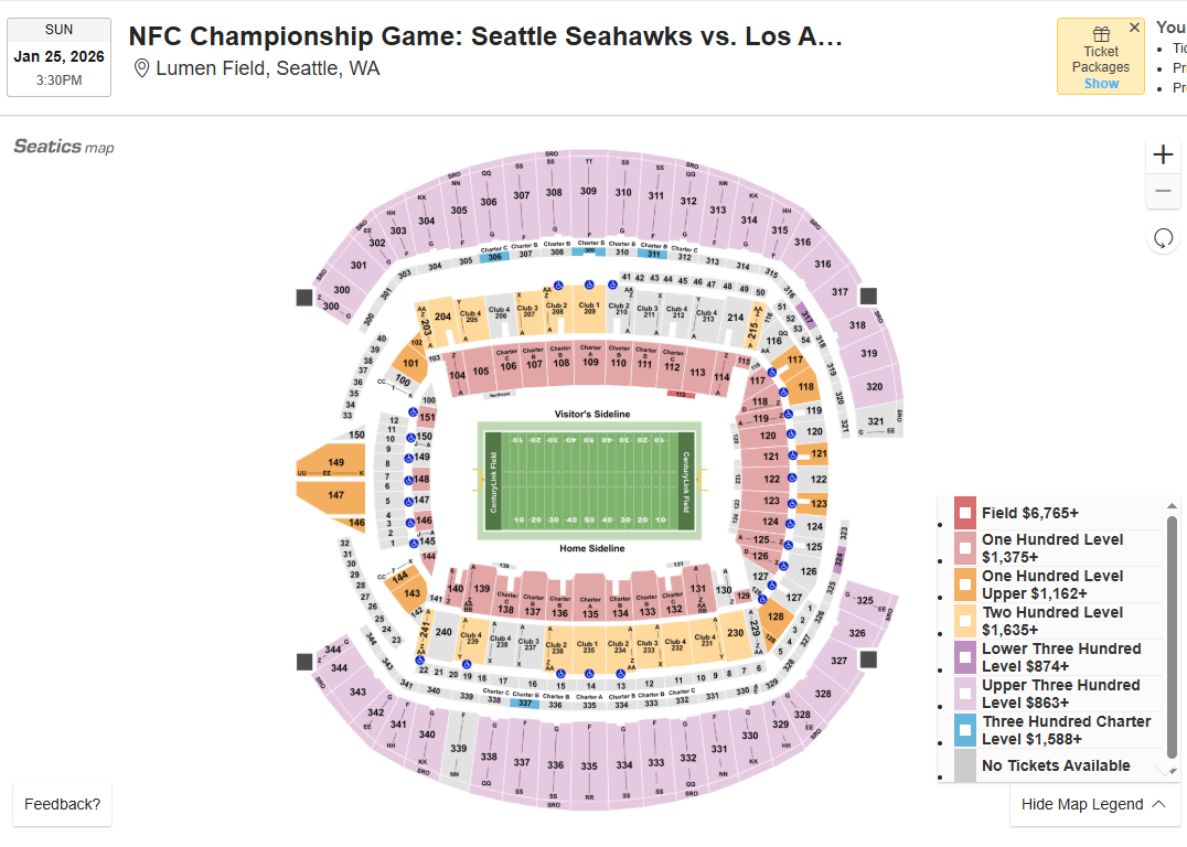 In Seattle, the strategy shifts from bargain hunting to getting the best possible value within the level you can reasonably afford. The upper level (300s) offers the bulk of the supply and the most attainable pricing — though still notably higher than Denver’s upper bowl. If you’re trying to manage budget, stick to the upper level and optimize based on sightlines and row rather than pushing into the lower bowl.